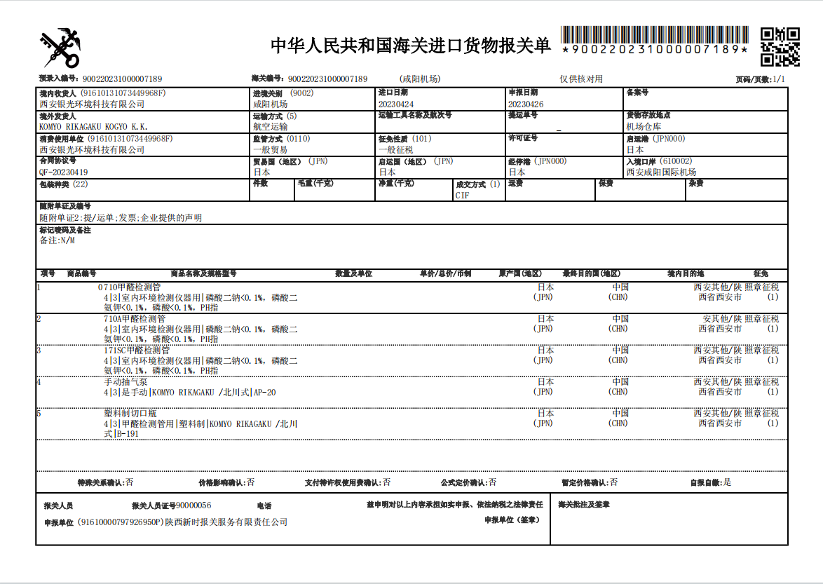 荃芬產(chǎn)品日本報(bào)關(guān)單憑據(jù)記錄。