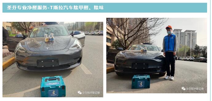 西安肖女士2021年購(gòu)買(mǎi)一輛T斯拉汽車(chē)。在購(gòu)買(mǎi)汽車(chē)時(shí),為了安全性能,購(gòu)買(mǎi)了進(jìn)口汽車(chē)T斯拉,汽車(chē)的自動(dòng)駕駛、電池續(xù)航都比較滿(mǎn)意,但新車(chē)的刺鼻味道,令其很不舒服,經(jīng)了解甲醛可降低身體抵抗力,嚴(yán)重影響健康。為了家人和孩子考慮,肖女士選擇荃芬除甲醛,為愛(ài)車(chē)除甲醛、除味。